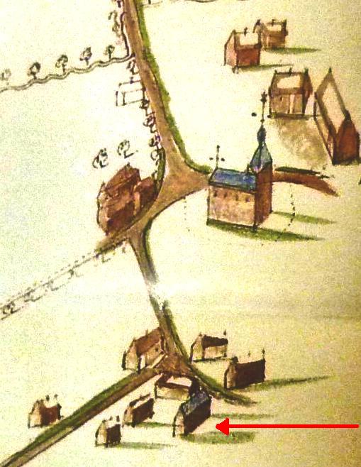 Op het einde van de 17 e eeuw verschijnen de eerste landkaarten van ons dorp. In het kaartboek van de abdij van Grimbergen ( 1690 ) kan men duidelijk onderaan de pastorij en de tiendenschuur zien, bovenaan het Hof te Meuzegem of Hof van Pitsenburg en in het midden de kerk.